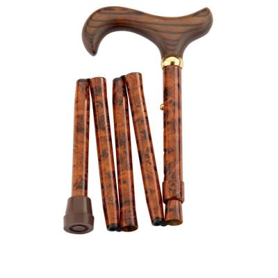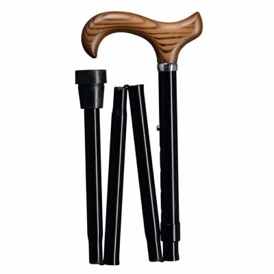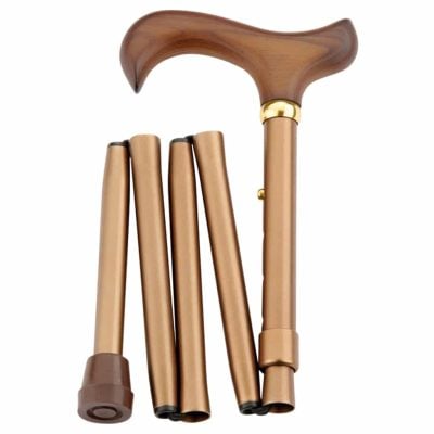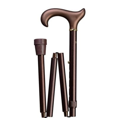• Canne de marche pliante réglable couleur bronze – poignée derby en bois